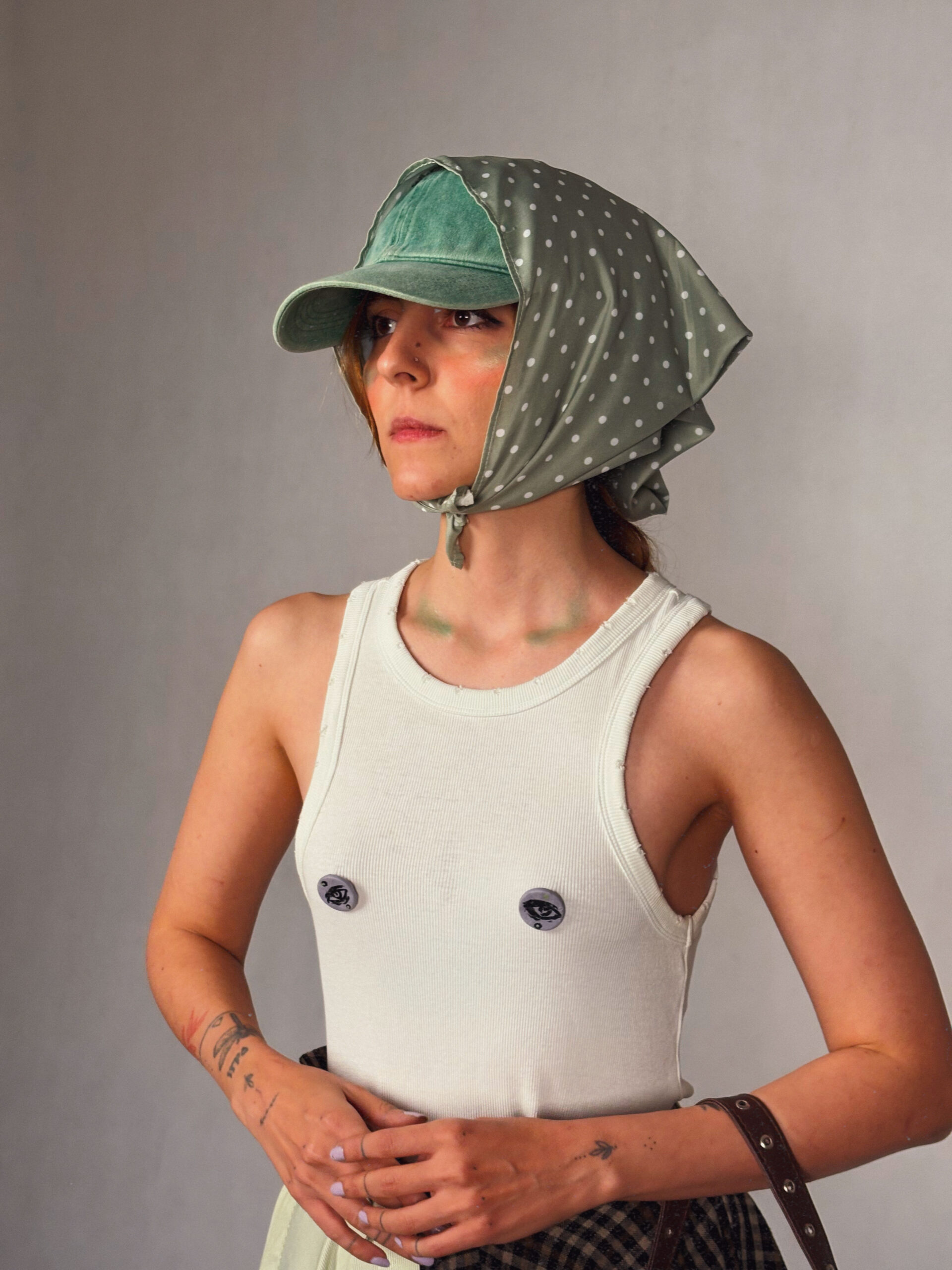 Styling experiments for Amoozal, exploring how simple pieces, soft textures, and playful headwear can create a strong, modern look. The focus is on effortless outfits that still feel personal and creative.